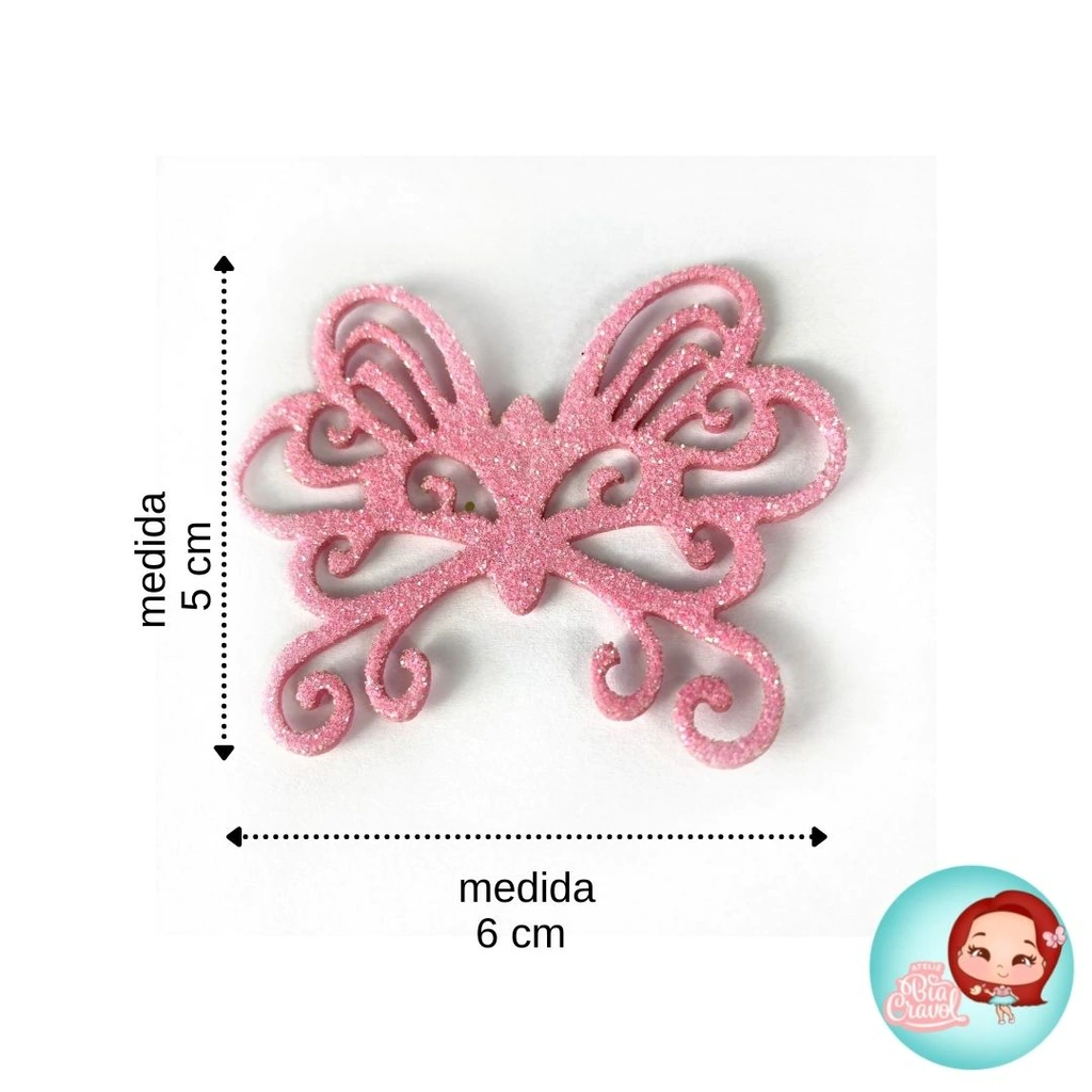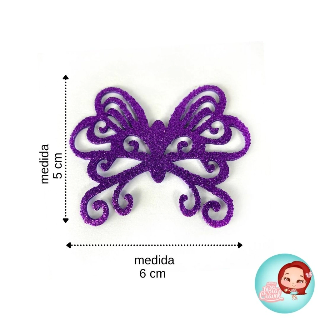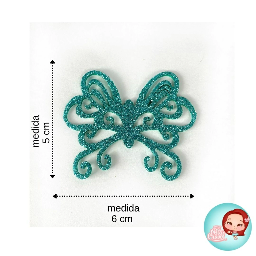 Essas lindas borboletas são feitas em EVA com Glitter em diversas cores e tamanhos para você deixar a sua peça linda.